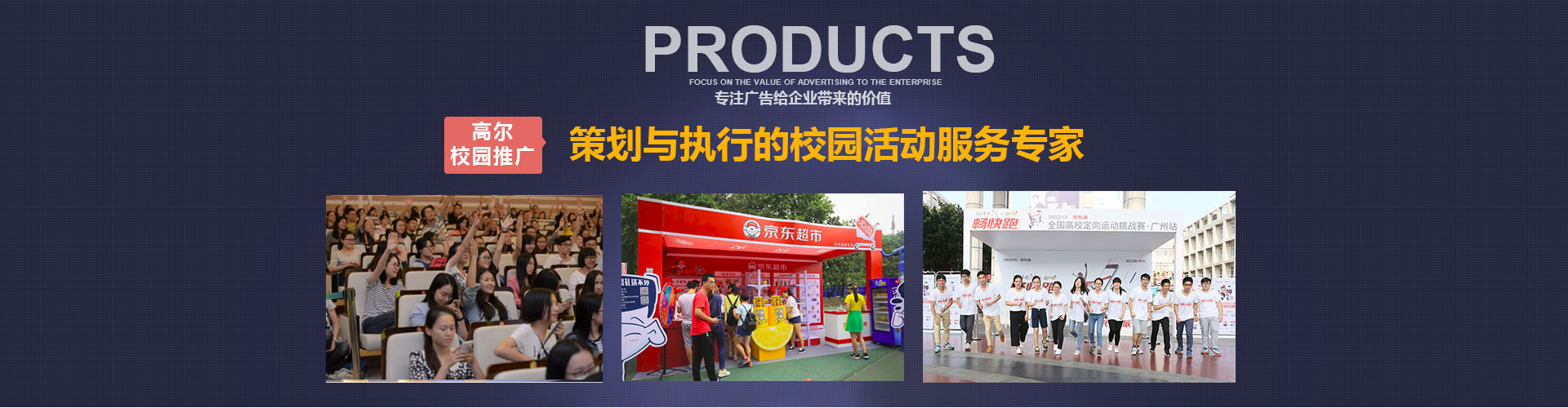 校园传媒公司【高迩校园】隶属于高迩微影(北京)文化传媒有限公司,致力于校园营销推广,校园广告、校园品牌宣传、专注于为那些正在或准备在大学生青年族群中寻求拓展品牌、促进消费市场成长的客户提供一条便捷、360度全方位的推广渠道,共享高品质的产品和服务! 我们的核心资源有:全国50多个城市 500所高校2000多名在校兼职大学生可以承接:大学校园派发传单、大学校园张贴海报全国50多个城市 500所高校承接:大学校园活动策划执行、大学校园巡展、大学校园地推、校园讲座全国 1000多所高校微信群、QQ群、网红直播资源、论坛贴吧、大学校园公众号资源全国200多所高校合作广告资源:大学灯箱广告、大学桌帖广告、大学围网广告、大学框架广告 我们是校园整合传播服务提供商,我们是中国高校里的推广专家,我们是您的校园引路人,我们将为您提供一站式校园传播推广方案! 全国执行城市 Cities【北京】【上海】【广州】【深圳】【太原】【石家庄】【吉林】【长春】【沈阳】【大连】【哈尔滨】 【武汉】【长沙】【南宁】【重庆】【成都】【西安】【合肥】【兰州】【济南】 等